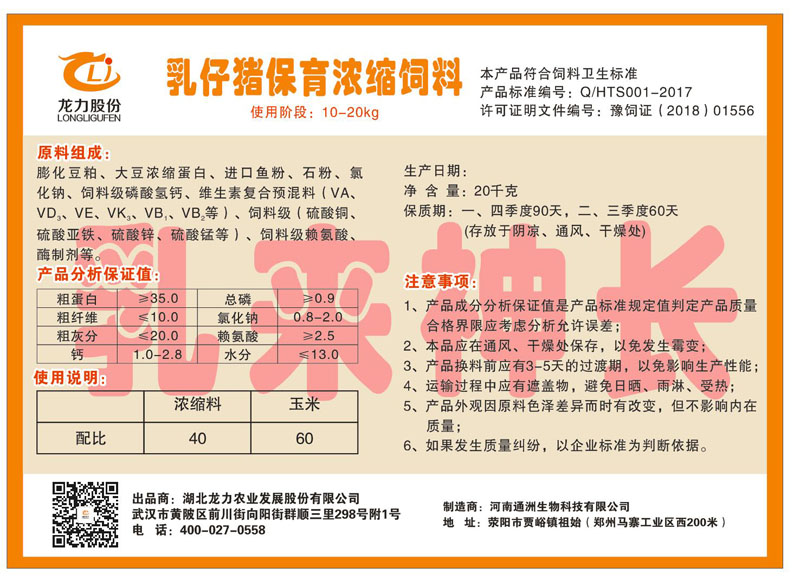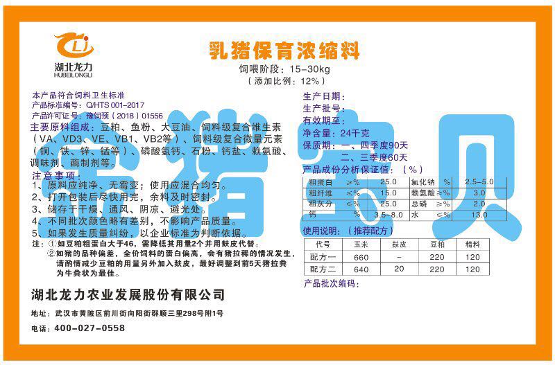 湖北龍力農(nóng)業(yè)發(fā)展股份有限公司坐落于武漢市黃陂區(qū)前川街向陽(yáng)街群順三里298號(hào)附1號(hào)。公司成立于2014年6月,公司自成立以來(lái)把“創(chuàng)全球最大養(yǎng)豬綜合服務(wù)”為企業(yè)愿景。致力于打造教保料品牌”作為公司發(fā)展的明確目標(biāo)。公司一直致力于豬營(yíng)養(yǎng)的研究和開發(fā),積極與國(guó)內(nèi)外高校和科研機(jī)構(gòu)合作,推廣養(yǎng)豬技術(shù)、動(dòng)物營(yíng)養(yǎng)新概念,向世界農(nóng)牧企業(yè)學(xué)習(xí)與合作。公司采用國(guó)內(nèi)先進(jìn)的生產(chǎn)工藝,選擇高精度電子配料秤,高均勻度、無(wú)殘留混合機(jī)等先進(jìn)設(shè)備....